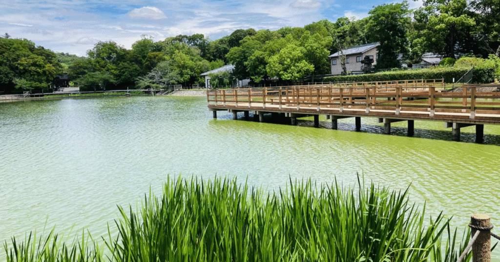 深田池は四季の景色が美しく、参拝の余韻を静かに味わう場所として人気があります。祈りの後に歩けば、心の調律が自然に進んでいく時間となります。